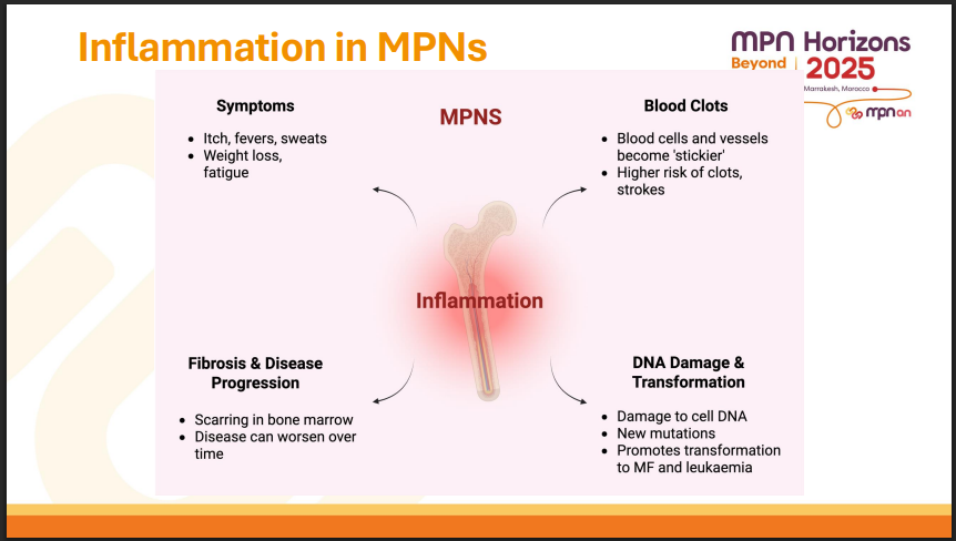 การเลือกการรักษา MPNs ไม่ได้ขึ้นกับแค่ตัวเลขเม็ดเลือด แต่ต้องดูผลต่อ “การอักเสบ” ด้วย เพราะส่งผลต่ออาการ ความเสี่ยงลิ่มเลือด และการลุกลามของโรค